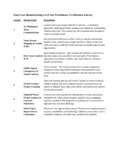 Lean Level One Practitioner Program Days Detail