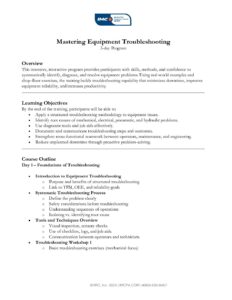 • Mastering Equipment Troubleshooting